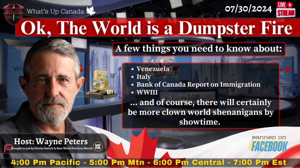 A few things you might want to know about:– Venezuela– Italy– Bank of Canada Report on Immigration– WWIII… and of course, there will certainly be more clown world shenanigans by showtime.